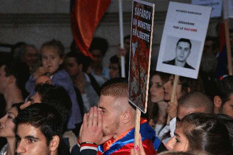 Among slogans, the crowd shouted “Aliev fascist, outside France!”, “Safarov in prison!” and “Karabakh belongs to us not in Baku! “