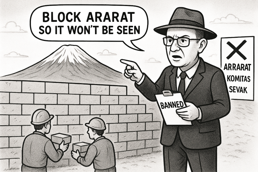They can become extremely agitated if they see anywhere the biblical Mount Ararat. Does this apply to all literary works written by Armenians, to Armenian painters’ canvases, to Armenian composers’ melodies? (Let us recall, for instance, Narekatsi’s hymn “The cart descended from the mountains of Masis.”) Perhaps all those works could be considered “propaganda of war and revenge,” “grief and suffering,” a “pathetic form” — since these “negative phenomena” are precisely what the draft government decision “On the Aesthetic Localization and Support of Real Armenia” condemns.