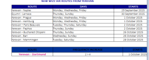Wizz Air started operating flights on the route Larnaca –Gyumri- Larnaca