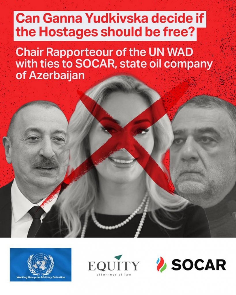 Ganna Yudkivska was appointed to the UNWGAD in October 2022. According to the UN’s rules, her ties to Azerbaijan should have precluded her from being a member of the Working Group in cases connected with Azerbaijan. Her work as a partner at Equity Law Firm establishes a direct financial link between her and the Azerbaijani Government, itself a party to the proceedings in Opinion No. 46/2024 Ruben Vardanyan (v. Azerbaijan).