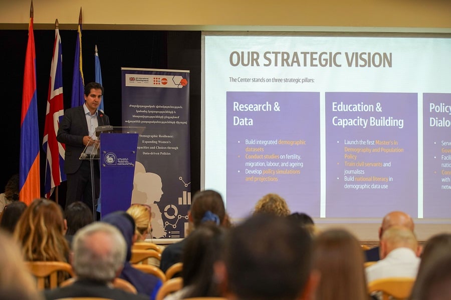 YEREVAN, Armenia – On October 7, 2025, Yerevan State University (YSU) and UNFPA in Armenia officially announced the launch of the new project “Demographic Resilience: Expanding Women’s Capacities and Choices through Data-driven Policies” with funding by the UK International Development from the UK government, as well as in cooperation with the Ministry of Labour and Social Affairs inaugurated the Demographic Research Center at YSU.