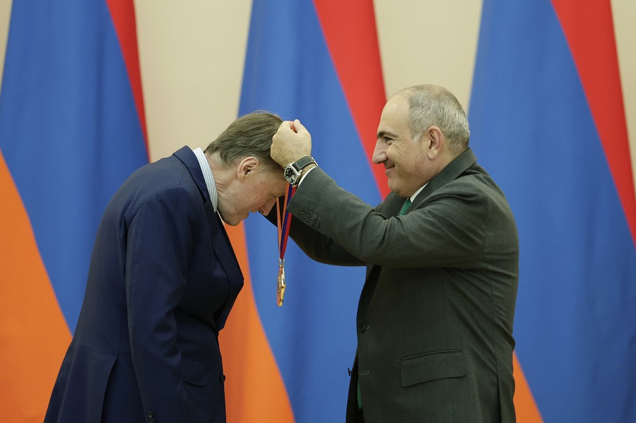 The Prime Minister presented the State Award of the Republic of Armenia for Global Contribution to High Technologies to CEO and Chairman of the Board of Directors of Analog Devices Inc. (ADI) Vincent Roche. In his speech, the Prime Minister congratulated Vincent Roche on receiving the State Award and noted that in the modern and technological world, the activities of our awardees are felt in our lives every day. Nikol Pashinyan emphasized the importance of meetings and conversations with awardees in developing government policies. “When asked what the government of your country has helped you with, in all cases I have received one answer: education. The government has provided us with education: general education, higher education, postgraduate education. Perhaps our conversations with the awardees on the occasion of the award ceremonies also had an impact on the fact that we are now so much focused on education. Of course, our experience, knowledge, and practice have also led us to the following: today in Armenia there is practically no issue the solution of which does not lie through education, be it foreign policy, domestic policy, construction, the humanitarian sphere, or social issues,” the Prime Minister said.