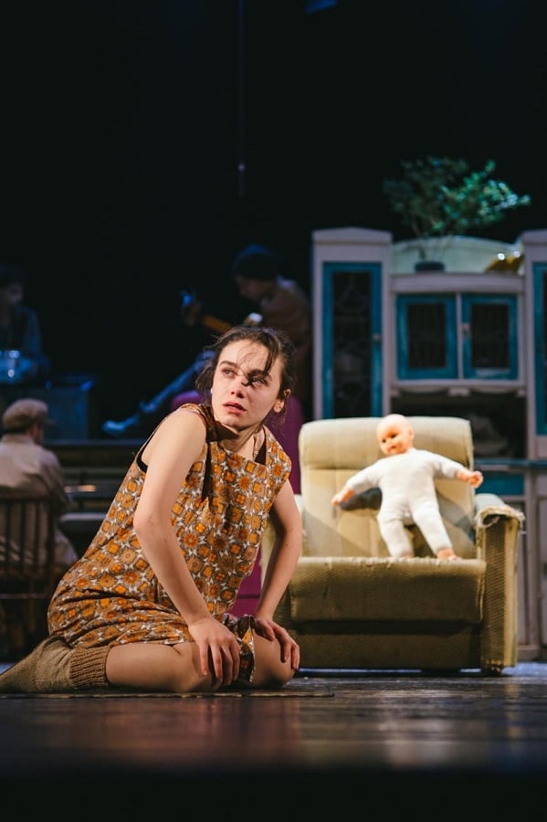 The production’s dramatic-psychological architecture is completed by composer Narek Cosmos’s music, which does not accompany the action so much as unlock it from within. Live music onstage is always a leap of courage, but this time it becomes fully integrated since the musicians themselves form part of the performance. Cosmos’s score defies the traditional idea of “background,” becoming a body that breathes independently onstage. At times his music resembles the characters’ inner tremor: soft, sensitive, fragile, almost invisible; then suddenly it erupts into a sharp, irregular, uncontrollable rhythm, echoing the ruptured and re-stitched seams of human relationships.