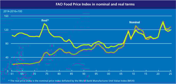 Benchmark for globally traded food commodity prices was slightly below year-ago level