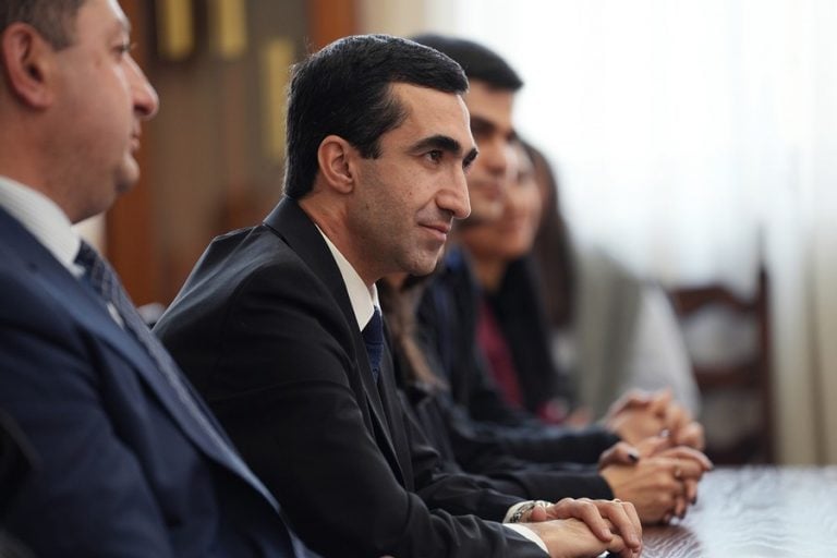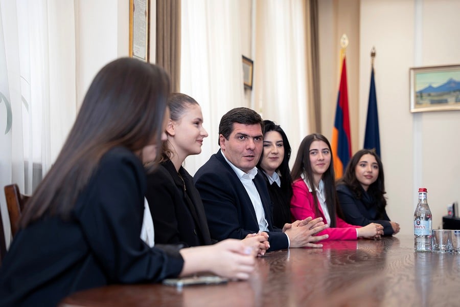The meeting was attended by students who were granted AMD 1 mln scholarships both this year and last year, along with YSU Rector Hovhannes Hovhannisyan and the Dean of the Faculty of Economics and Management, Karlen Khachatryan.