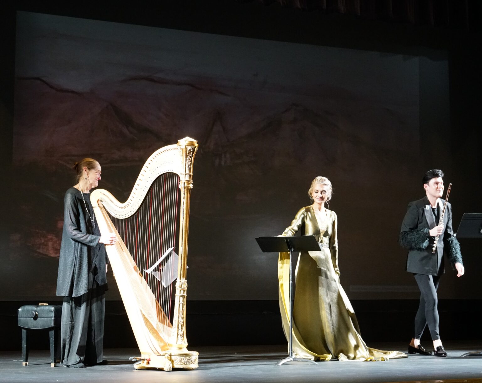 LEXINGTON, Mass. — Isabel Bayrakdarian, possessor of an exquisite soprano voice, performed a program called “Ancestral Songs, Prayers and Lullabies” at Lexington’s Scottish Rite Museum and Library on November 15. Talented musicians Ellie Choate on the harp, Rayo A. Furuta on the flute, and Mher Mnatsakanyan on the duduk joined her in the program, with drawings by Kevork Mourad projected on a screen to accompany the music.
