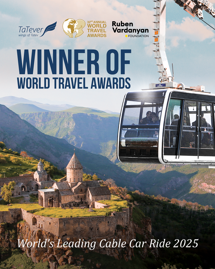 The “Wings of Tatev” cable car has won the prestigious international World Travel Awards for the fourth time, taking the title of “World’s Leading Cable Car Ride.” This year, the Armenian cable car again surpassed competitors from Bolivia, Brazil, Vietnam, Canada, New Zealand, the USA, and South Africa. Previously, “Wings of Tatev” brought victory to Armenia in this category in 2024, 2023, and 2021.