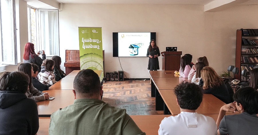 Thanks to the initiative, hundreds of children — including students from Yerevan’s special educational complex for children with hearing impairments — are becoming acquainted with local biodiversity with the support of trained teachers. They study how weather conditions and environmental factors affect bird behavior, keep scientific logs, and carry out mapping activities.